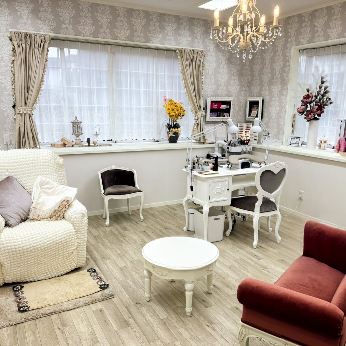 ネイルサロンYUUBIの扉を開けると、エレガントな雰囲気が広がり、素敵な空間が出迎えてくれます。