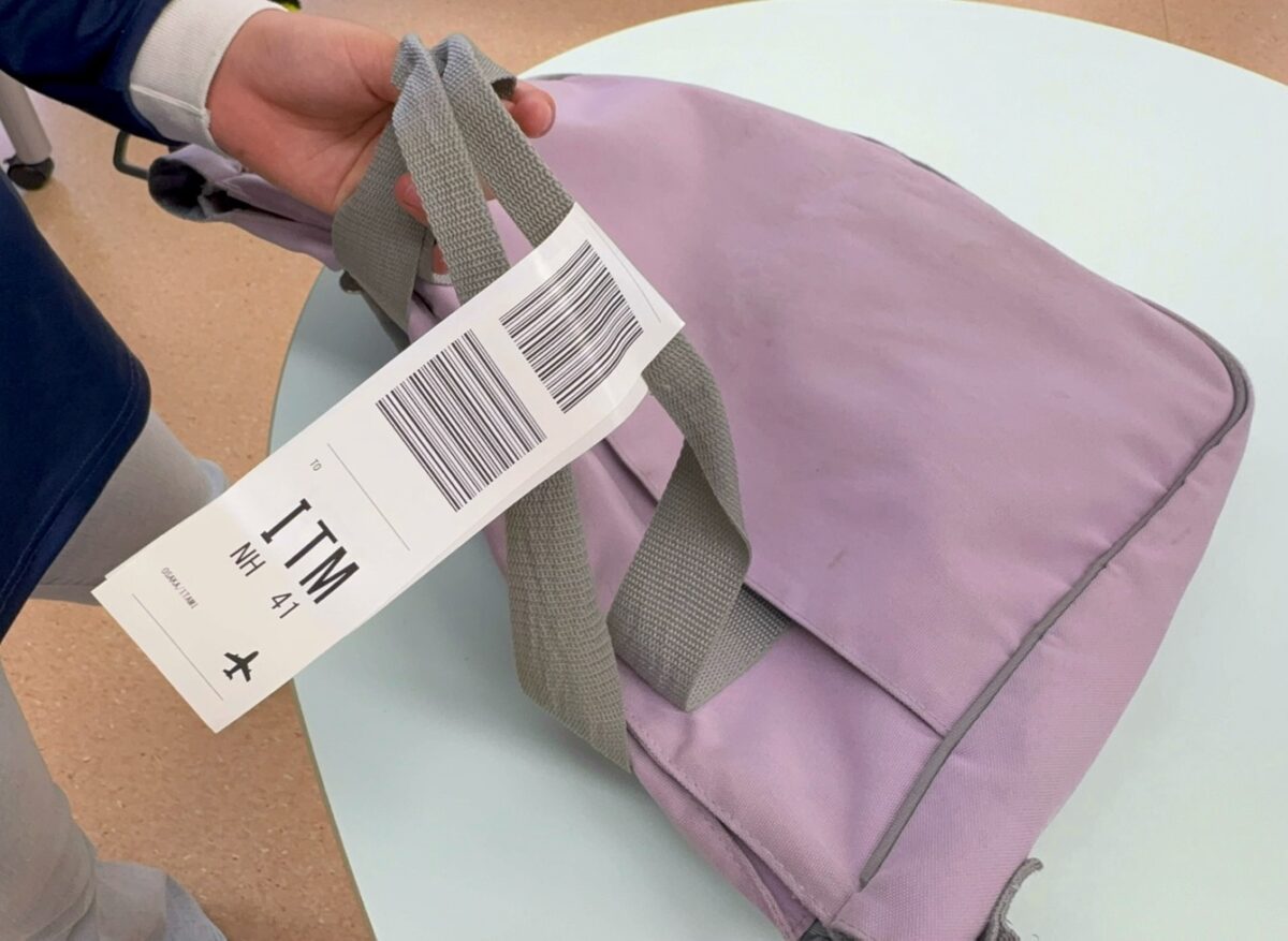 今回はお客様対応の仕方を学んだあと、荷物に付けるタグの装着を体験しました。