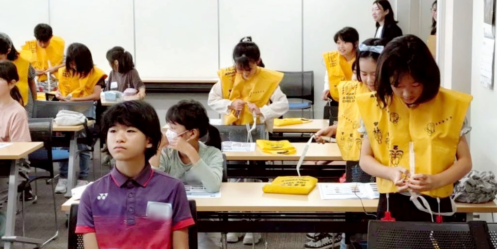 普段触れることのない救命胴衣に少し緊張しながらも、上手に扱っていました。