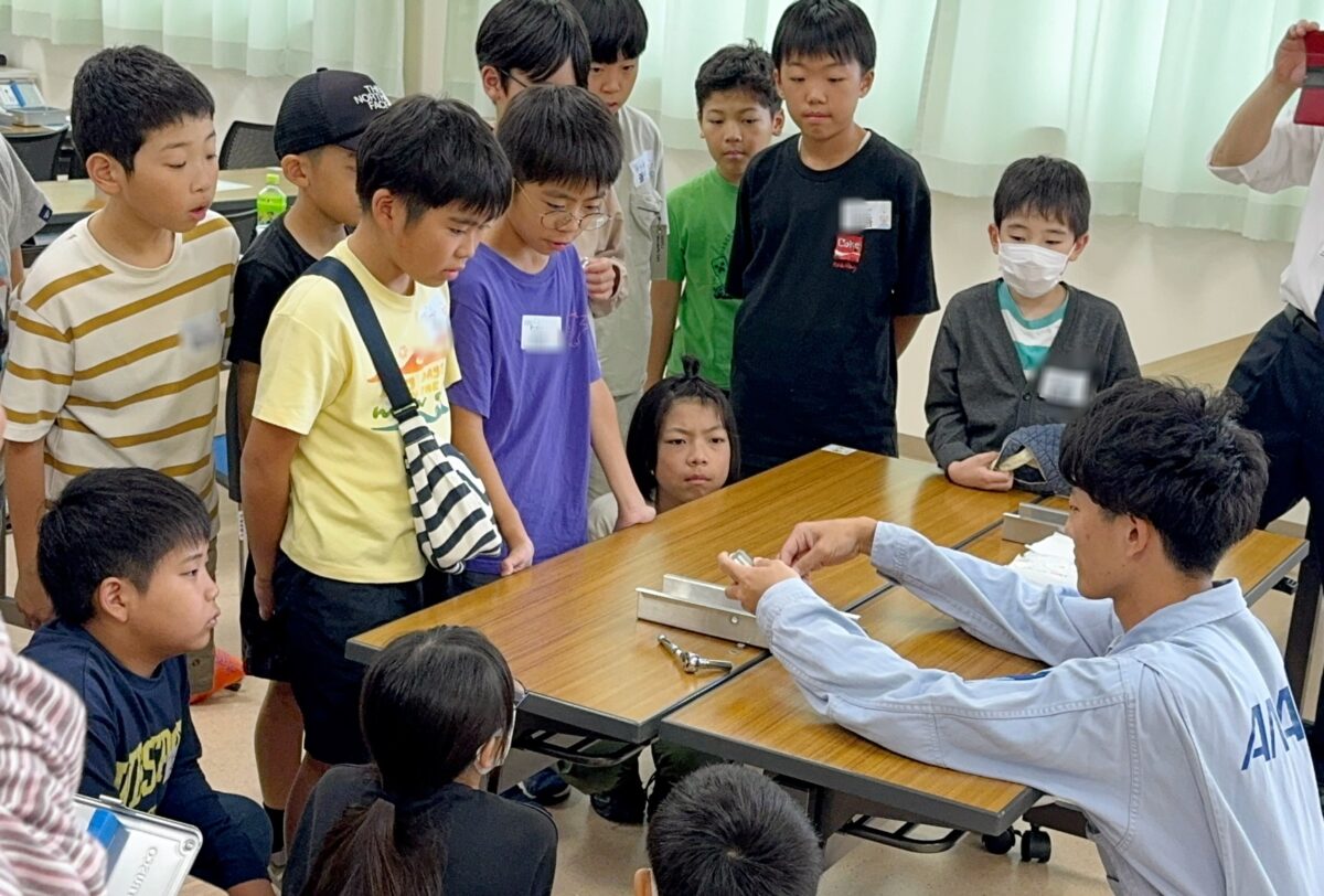 整備士の仕事体験は、実際の飛行機の部品を使用しました!飛行機についている部品の数や普段見ることのできない部品について教えていただき、興味津々で盛り上がっていました。
